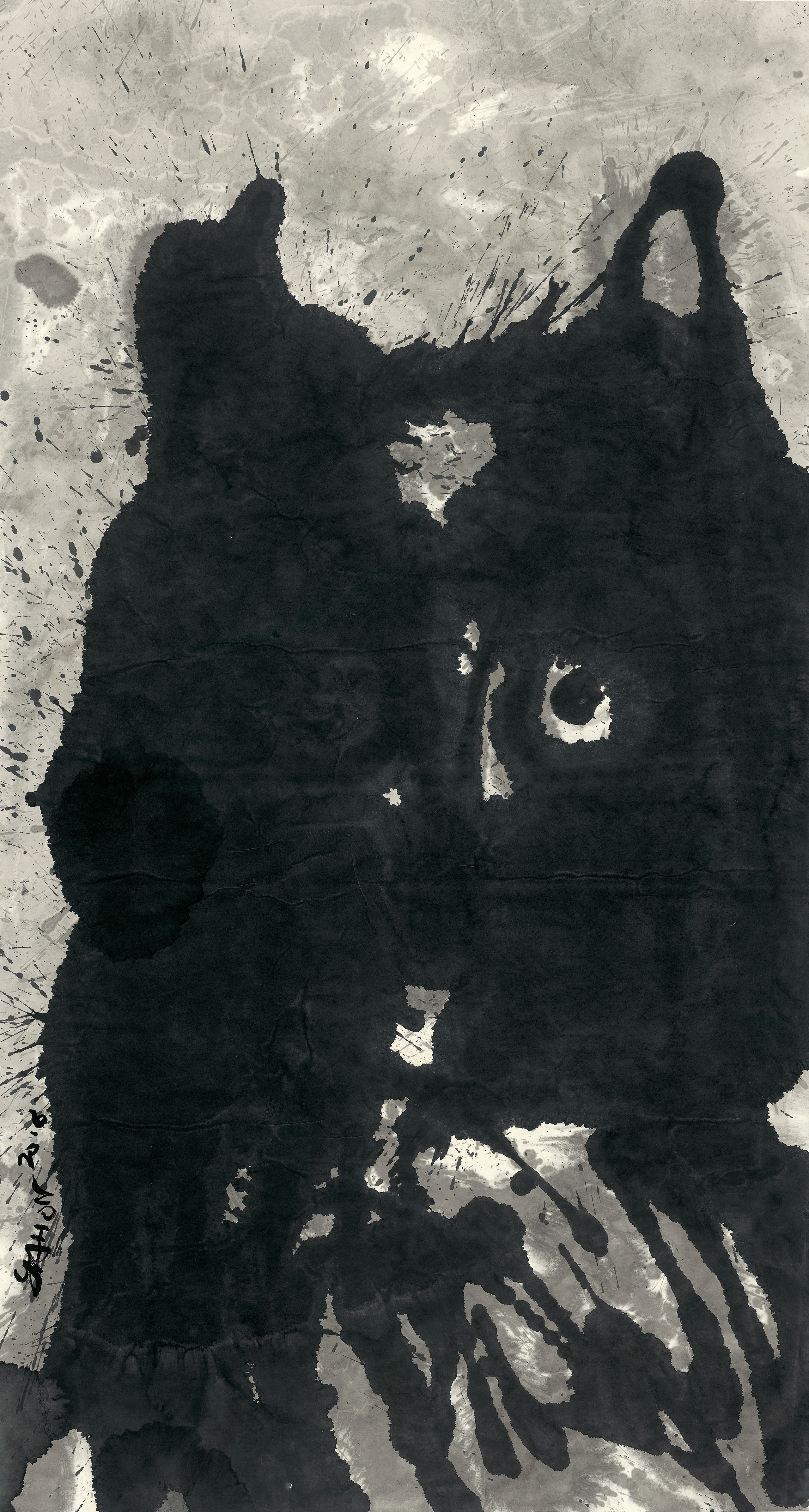 Cat (Animal series), 2020, ink on paper, 96 × 54 cm