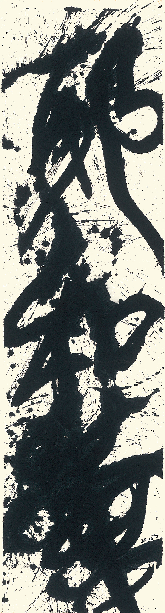 For over a thousand years, calligraphy has been considered one of the most elite forms of Chinese art, with decades of training necessary to attain the zenith of the practice. Yahon Chang, for example, began his lifetime of study at the age of six. Most of the thousands of characters, or graphs, have a complex composition, with many variants, but the overriding goal lies not in memorization, but in laying down motor memory through repetitive writing. With such mastery, the artist has no need to consider how to write a given text: with no conscious effort it simply flows from mind to body to brush to paper. Most importantly, calligraphy is revered as a direct expression of the writer’s persona in the moment. The characters serve as vehicles for the transmission of the artist’s qi, or life breath.