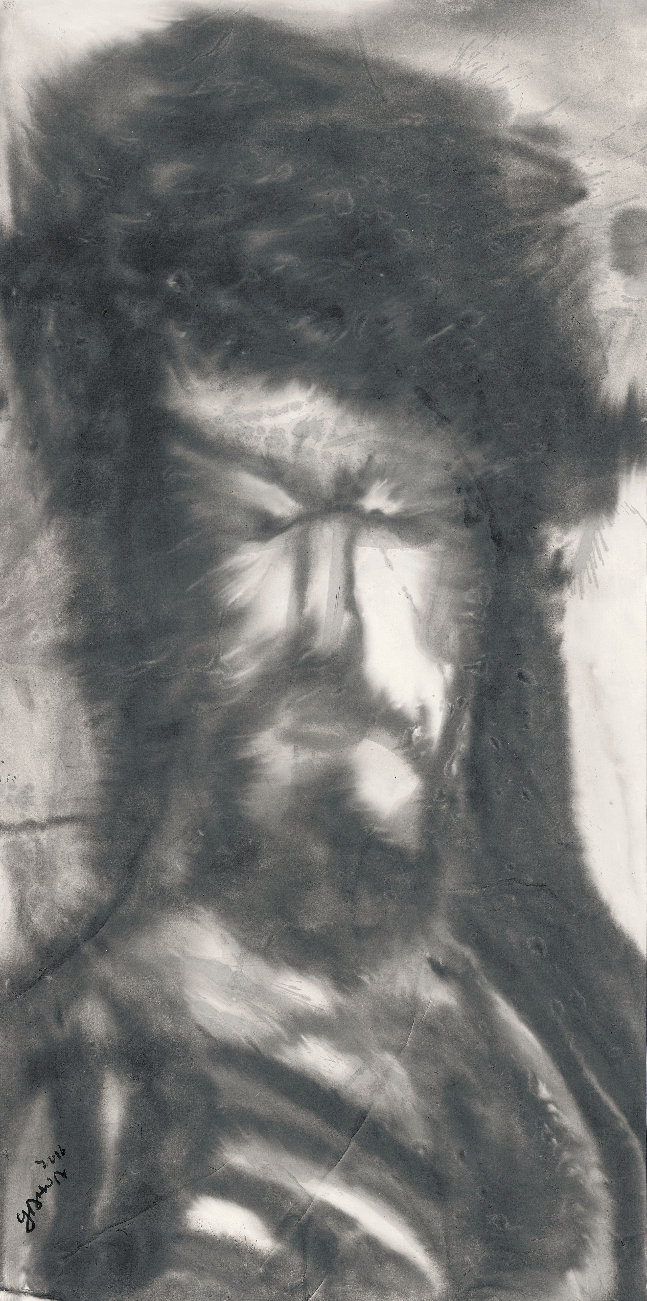 Out of his love and passion for Christ and the salvation bestowed upon him, Yahon Chang not only wants to capture the pain Jesus endured on the cross, but also His unconditional love for this world in this portraiture series. Chang also seeks to capture the holiness of light, which represents salvation and God’s divine glory through the Chinese technique of liubai, in which canvas space is intentionally left unpainted. We see the fusion of East and West, with subject matter familiar to the West yet expressed through Chinese brushwork. Chang’s unpainted canvas space redefines the meaning of liubai; it is a space of the divine glory of light and energy. This unpainted space is filled with the light of mercy, light of love, light of glory, and hope. The line and brushwork record his action on canvas and the spiritual path along which he journeys with faith, yet this representation of light showcases the inner spiritual pilgrimage of the artist.