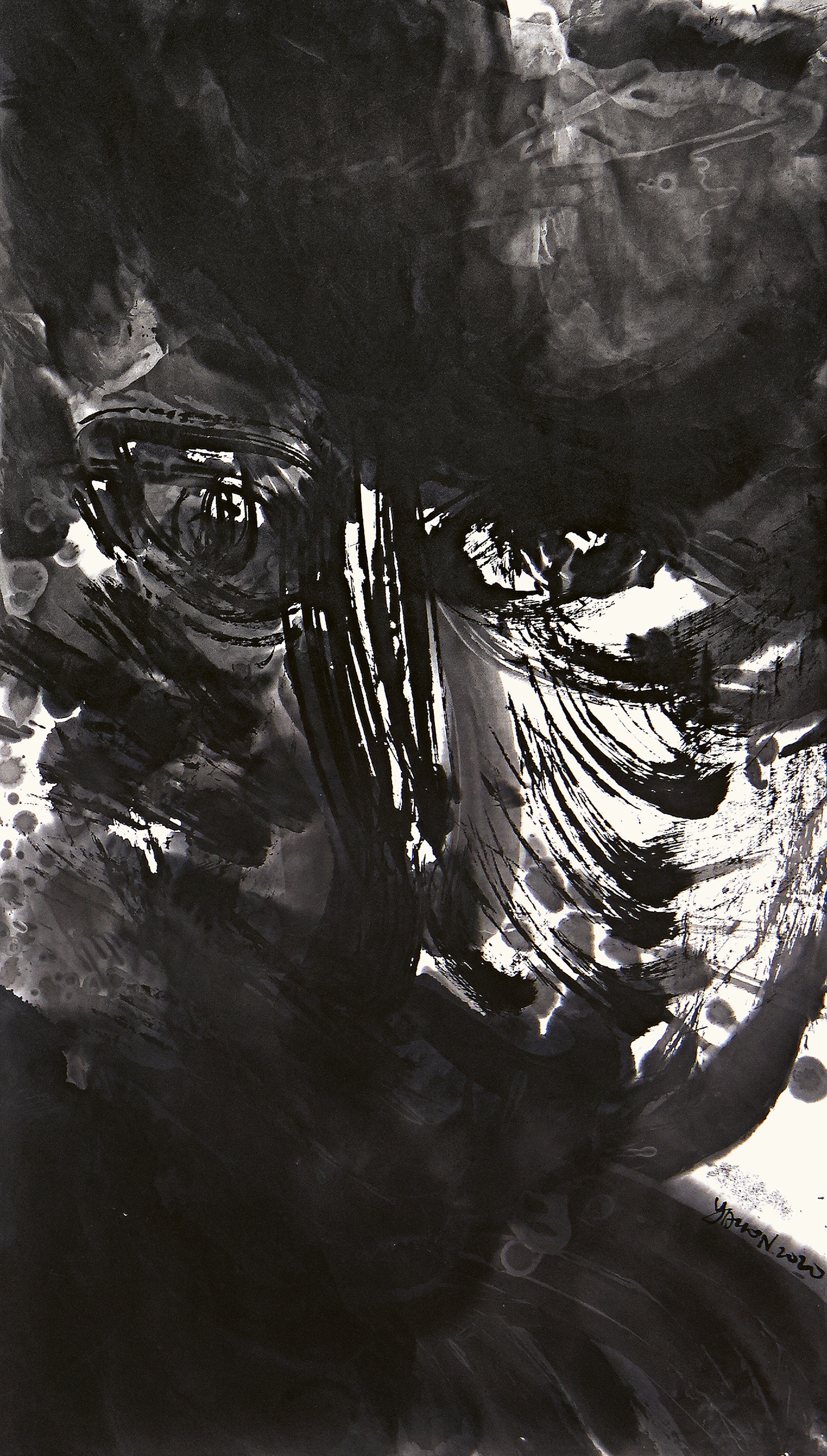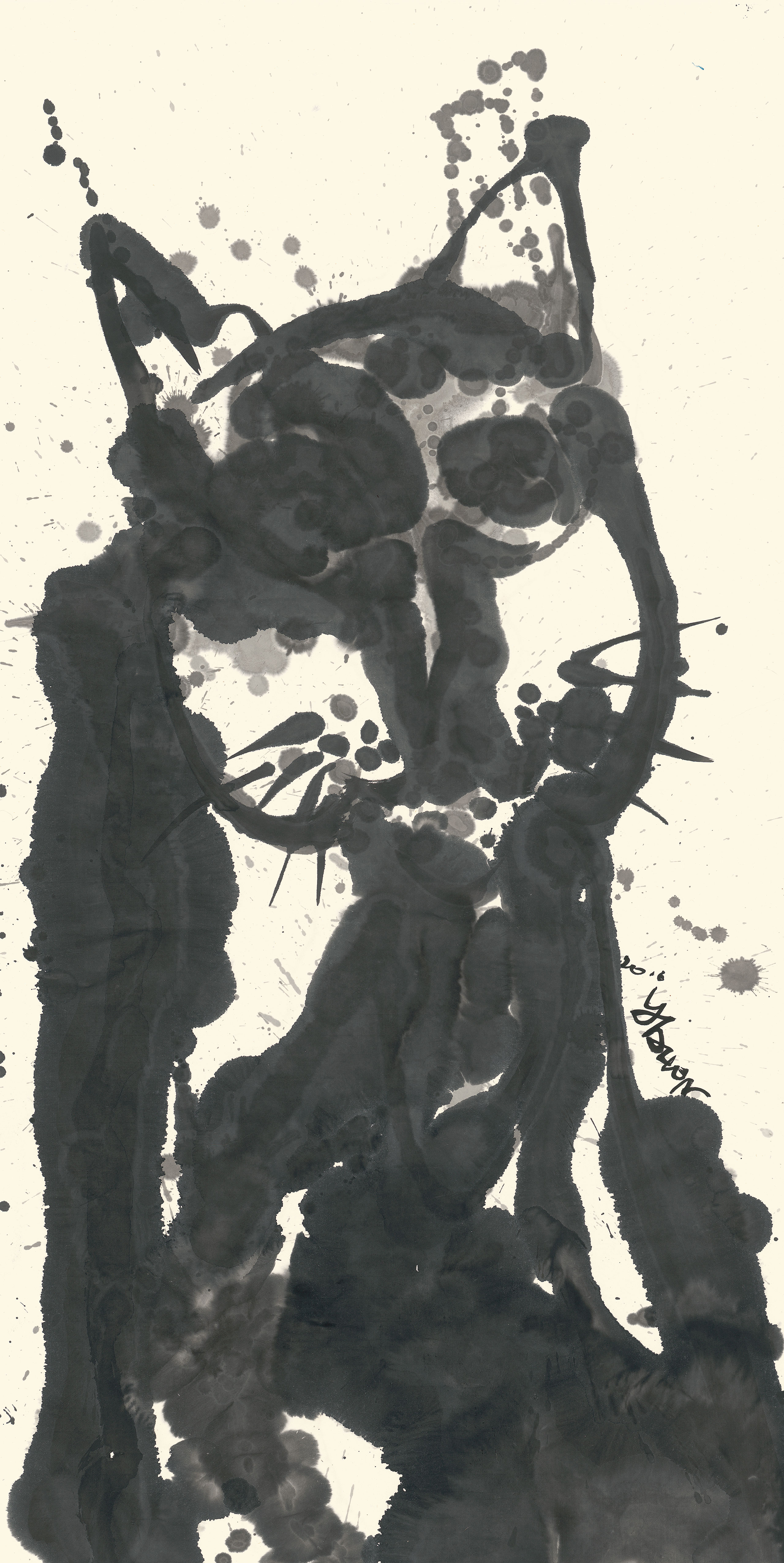 Cat (Animal series), 2020, ink on paper, 96 × 54 cm