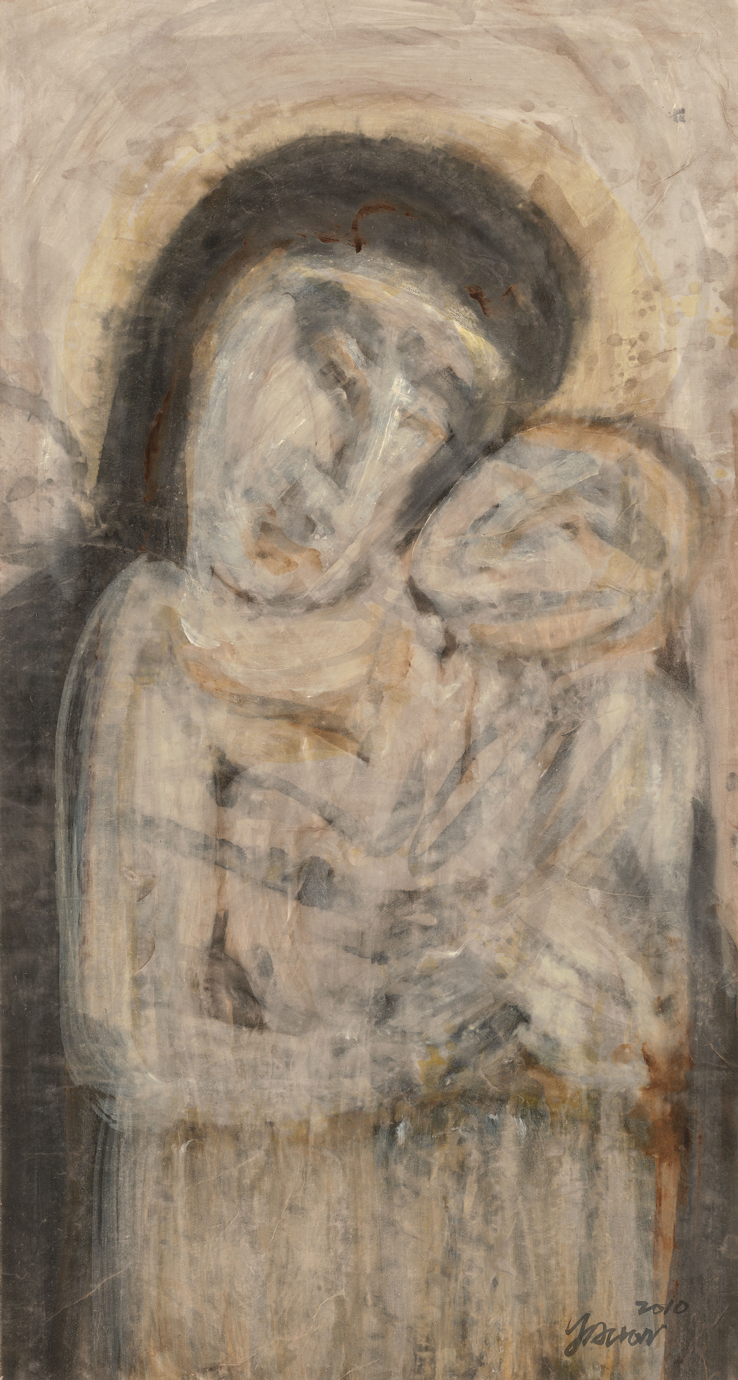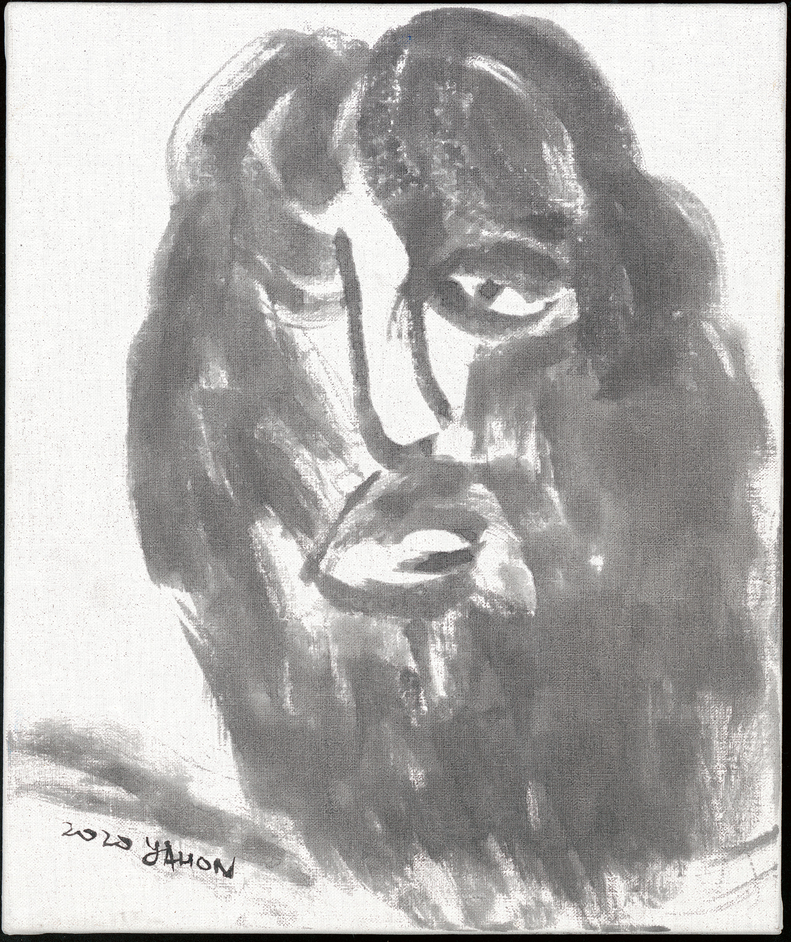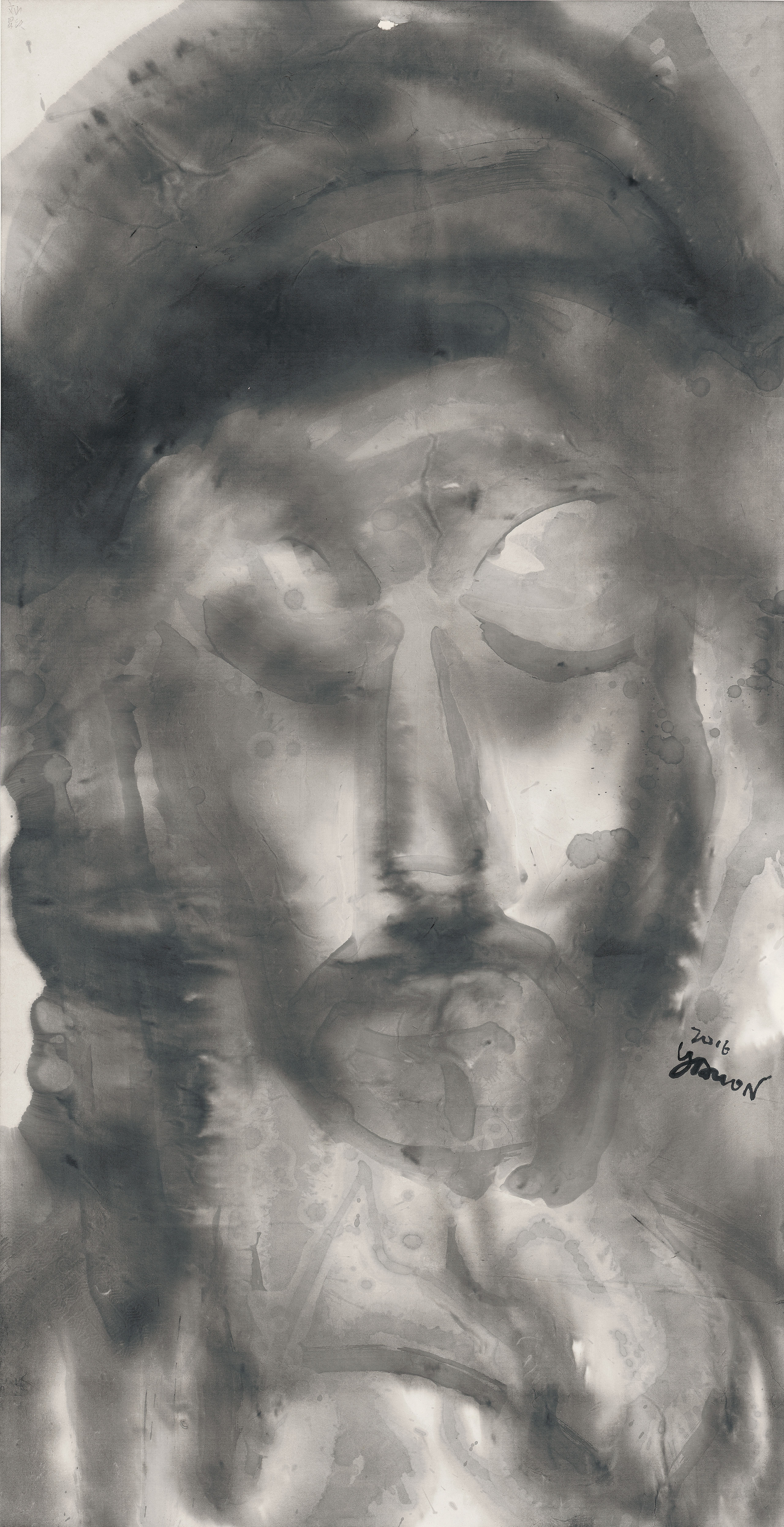 Out of his love and passion for Christ and the salvation bestowed upon him, Yahon Chang not only wants to capture the pain Jesus endured on the cross, but also His unconditional love for this world in this portraiture series. Chang also seeks to capture the holiness of light, which represents salvation and God’s divine glory through the Chinese technique of liubai, in which canvas space is intentionally left unpainted. We see the fusion of East and West, with subject matter familiar to the West yet expressed through Chinese brushwork. Chang’s unpainted canvas space redefines the meaning of liubai; it is a space of the divine glory of light and energy. This unpainted space is filled with the light of mercy, light of love, light of glory, and hope. The line and brushwork record his action on canvas and the spiritual path along which he journeys with faith, yet this representation of light showcases the inner spiritual pilgrimage of the artist.
